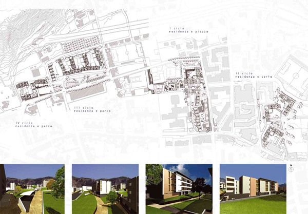 La relativa disinvoltura di collocazione dei moduli urbani, con le loro corti, ha invece richiesto molte attenzioni nella ricerca degli assetti planimetrici e topografici più adatti alle condizioni specifiche delle differenti situazioni insediative: si tratta di un sistema costituito da un oggetto, idealmente stabile ed integro, e dal suo sedime specifico e variabile, opera univoca di mediazione con il più immediato intorno. La previsione di una città che si trasforma sfruttando il concetto del progetto incrementale, dell’ipotesi di misurati, puntuali ma diffusi interventi di trasformazione, capaci cioè di una risonanza di gran lunga più estesa rispetto alla propria limitata scala d’intervento, trova nel progetto di suolo, nella valorizzazione degli spazi aperti, la sua configurazione stabile e contestuale. Il movimento di terra l’attenzione all’orografia, alla sua modellazione e significazione anche come vero e proprio manufatto tecnico urbano (pensiamo alle opere di canalizzazione a rete che deve ospitare), la strategia risolutiva e spaziale delegata agli assetti topografici - che ci colpisce così profondamente nell’opera di un Alvar Aalto o di un Juan Navarro Baldeweg - sono criteri contestuali primari ai quali ci rivolgiamo con profonda attenzione.
